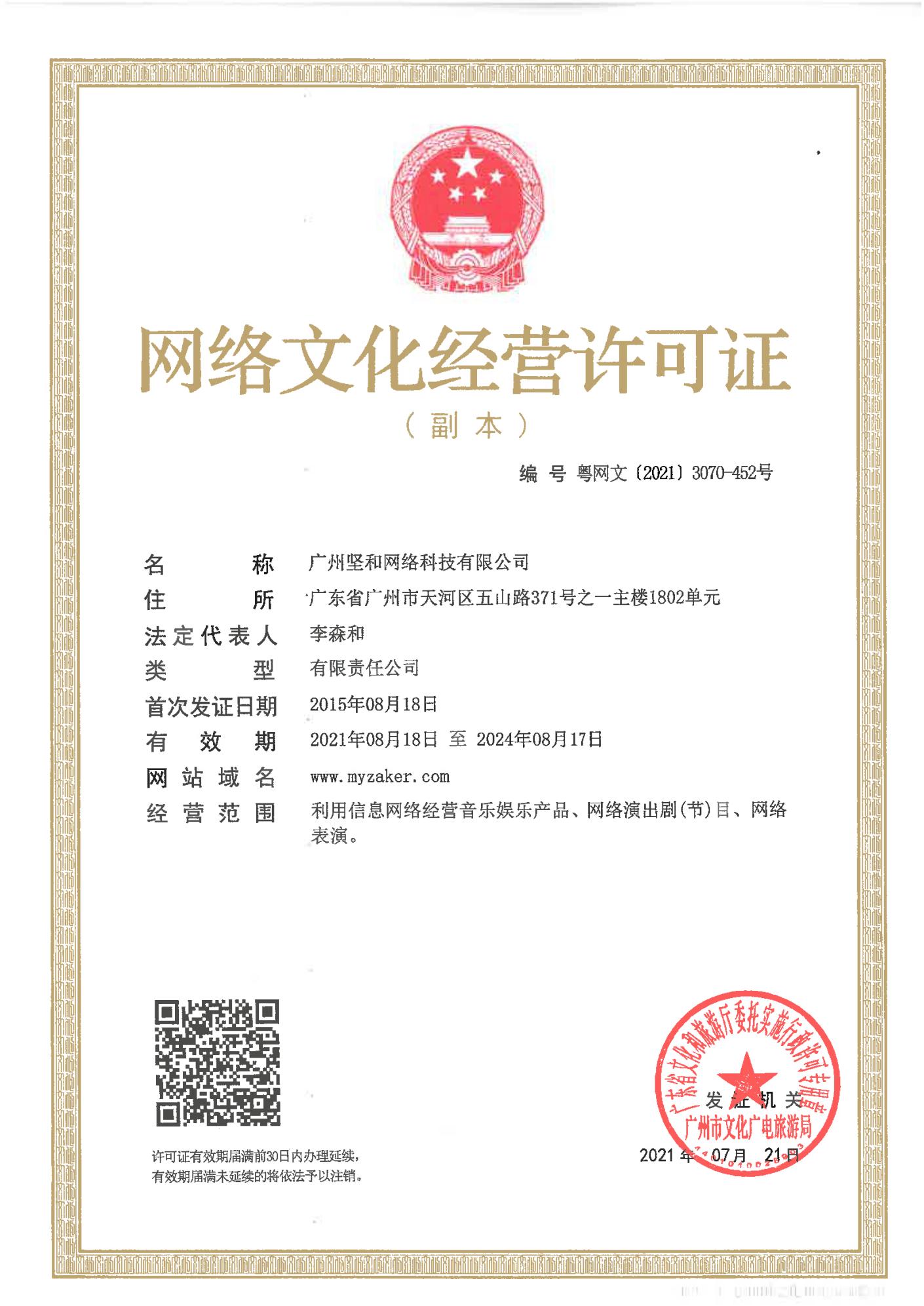 網(wǎng)絡(luò)文化經(jīng)營(yíng)許可證: